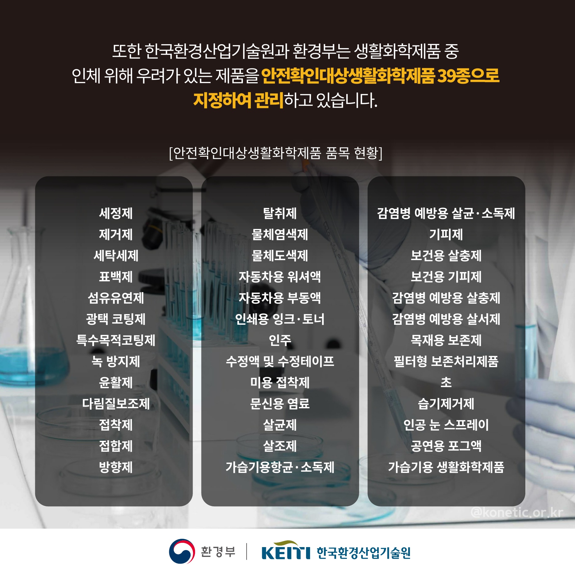 인체 위해 우려가 있는 제품을 안전확인대상생활화학제품 39종으로